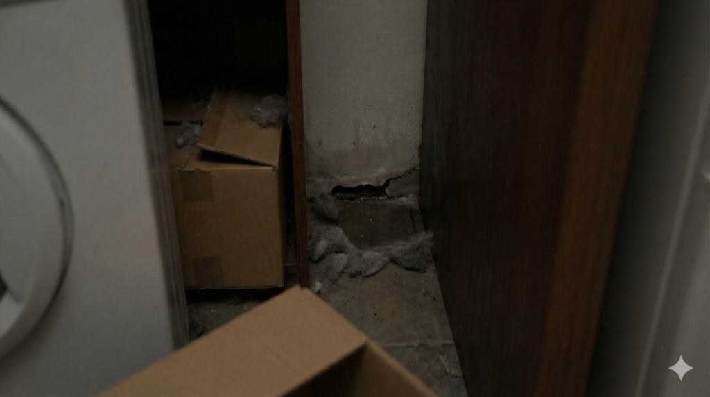 探すときは、棒や定規で「隙間の入口」を軽くトントンして動きを誘発し、逃げ道側に捕獲道具(粘着・掃除機)を待機させるのが効率的です。