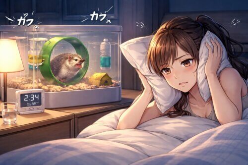 ハリネズミは夜行性で、活動のピークが人の就寝時間帯と重なりやすい動物です。回し車のカラカラ音、床材を掘る音、ケージのきしみ、移動音が積み重なると、かわいいでは済まなくなります。寝不足が続くと、人の側の我慢が減るのは当然です。これは愛情の不足ではなく、睡眠という生活の土台が揺らいでいる状態ですから、精神的にきつくなるのは当たり前です。