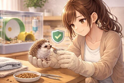 ハリネズミとの目標は、べったり懐かせることではなく、日々の世話で過剰に警戒されない状態まで慣れてもらうことです。ここに基準を置くと気持ちがかなり楽になります。