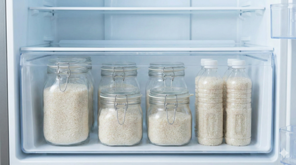 冷蔵庫保管の狙いは、米粒の内部に潜む卵や幼虫が動き出しにくい環境を作ることです。