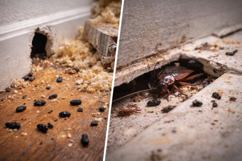 ネズミとゴキブリは、気づいた時点でかなり生活圏に入り込んでいることが少なくありません。ネズミのサインとして多いのは、黒い米粒状の糞、壁際の黒ずみ、天井裏や壁内の物音、かじり跡、食品袋の破れなどです。