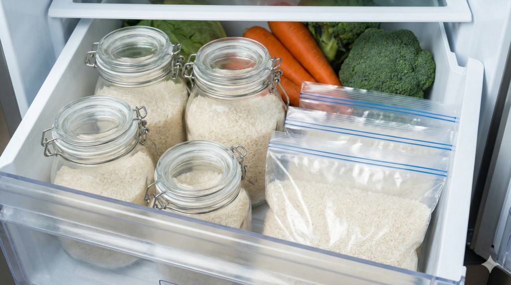 お米は、涼しく湿気の少ない場所での保存が基本で、家庭では冷蔵庫や野菜室の活用が推奨される案内もあります。