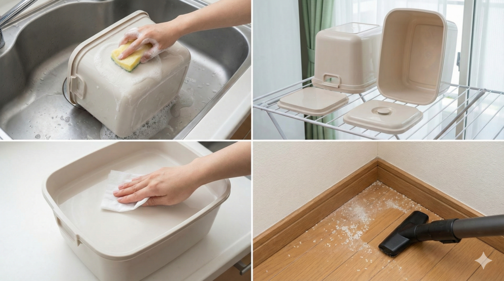 掃除機で吸ったあと、固く絞った布で拭き、乾燥させる。この流れで“残りカス”が減って再発が落ちます。