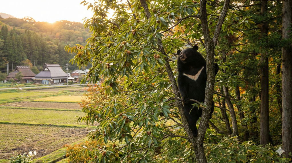 こうした里山は、クマにとって好物のどんぐりや果実が豊富な「豊かなエサ場」である一方で、人家や畑、果樹園と隣接していることが多く、クマと人間の距離が近づきやすい環境でもあります。