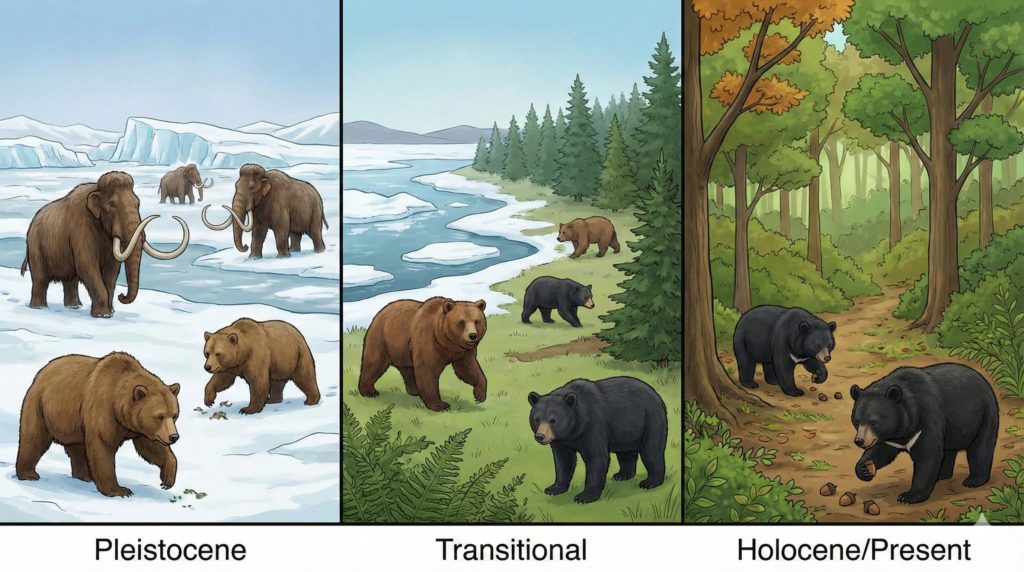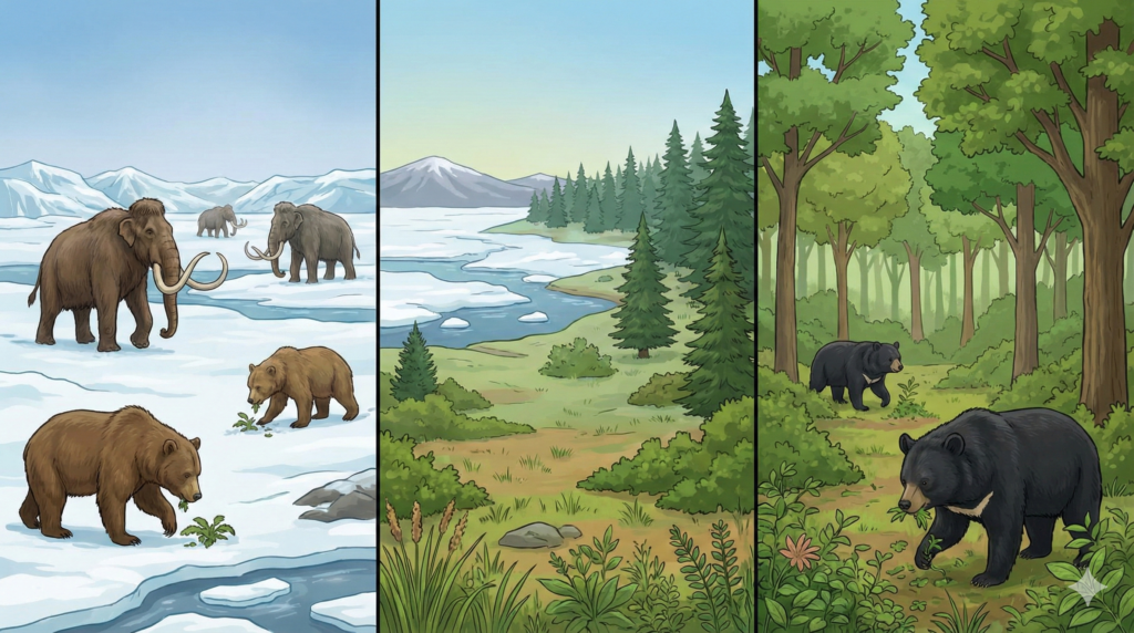 - 約34万年前〜2万年前:本州各地にヒグマが広く分布(化石記録)